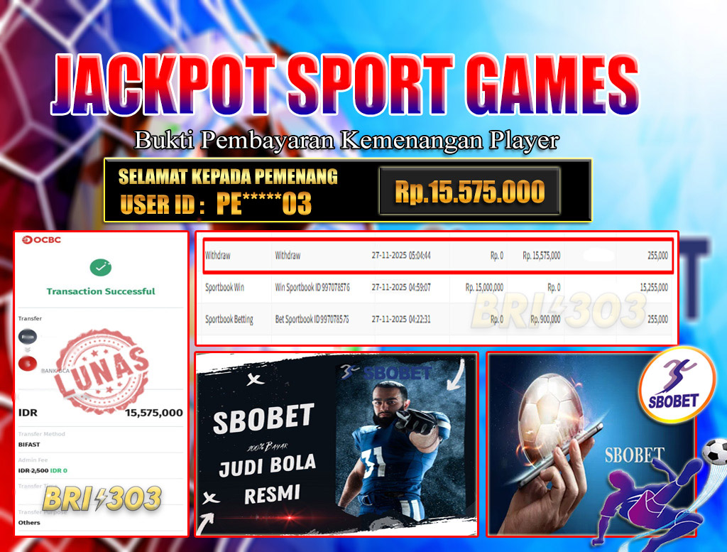 BRI303 JACKPOT SPORT GAMES 26 NOVEMBER 2025 Rp.15.575.000,- LUNAS