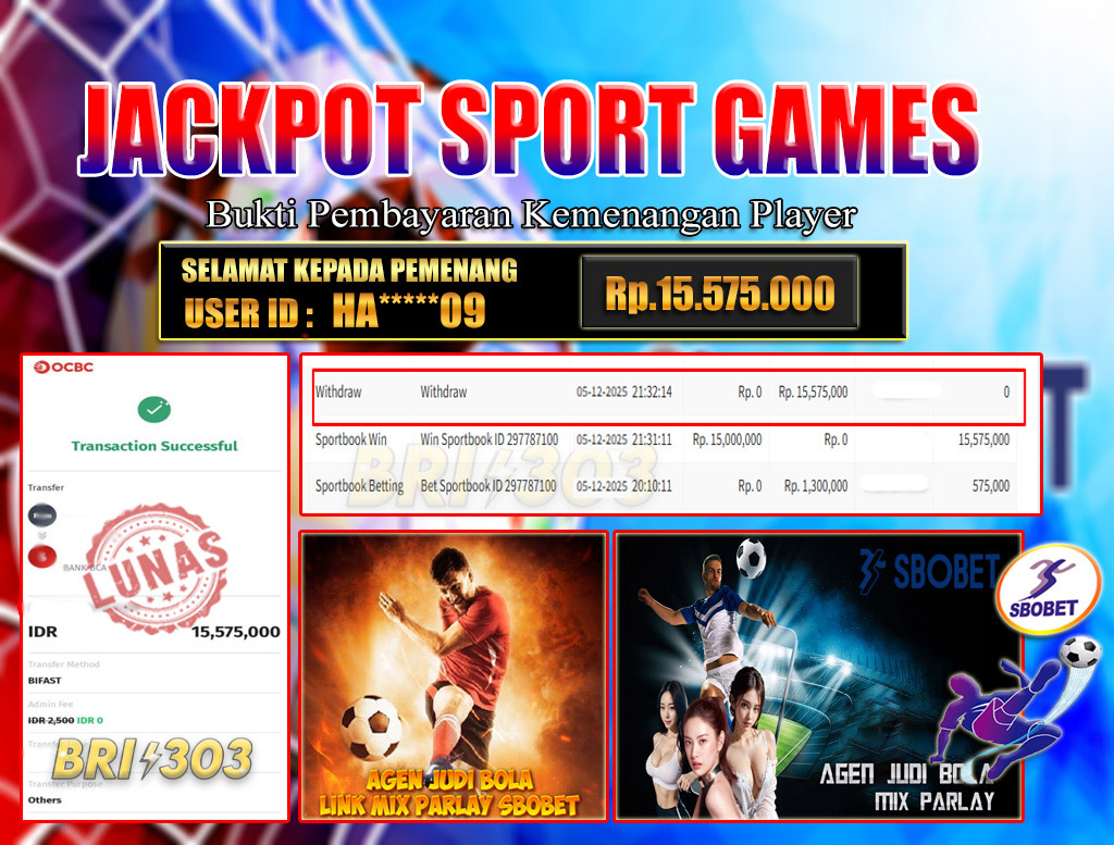 BRI303 JACKPOT SPORT GAMES 05 DESEMBER 2025 Rp.15.575.000,- LUNAS