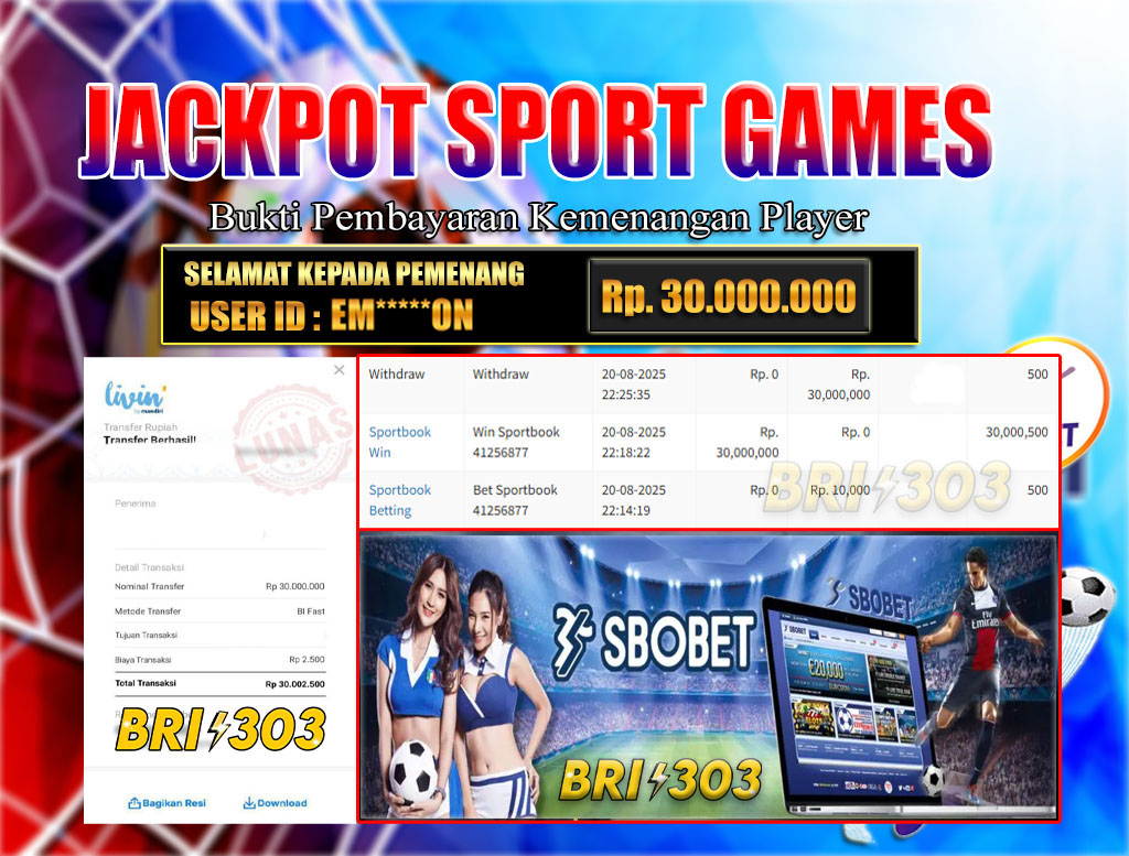 BRI303 JACKPOT SPORT GAMES 07 DESEMBER 2025 Rp.30.000.000,- LUNAS