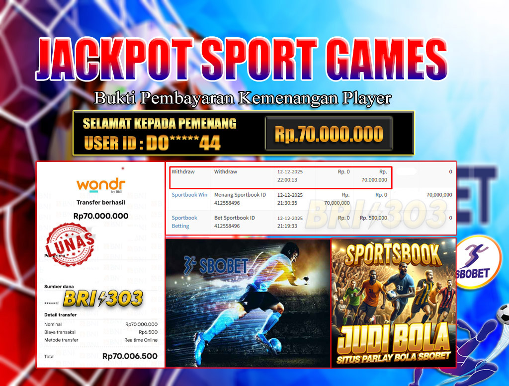 BRI303 JACKPOT SPORT GAMES 12 DESEMBER 2025 Rp.70.000.000,- LUNAS