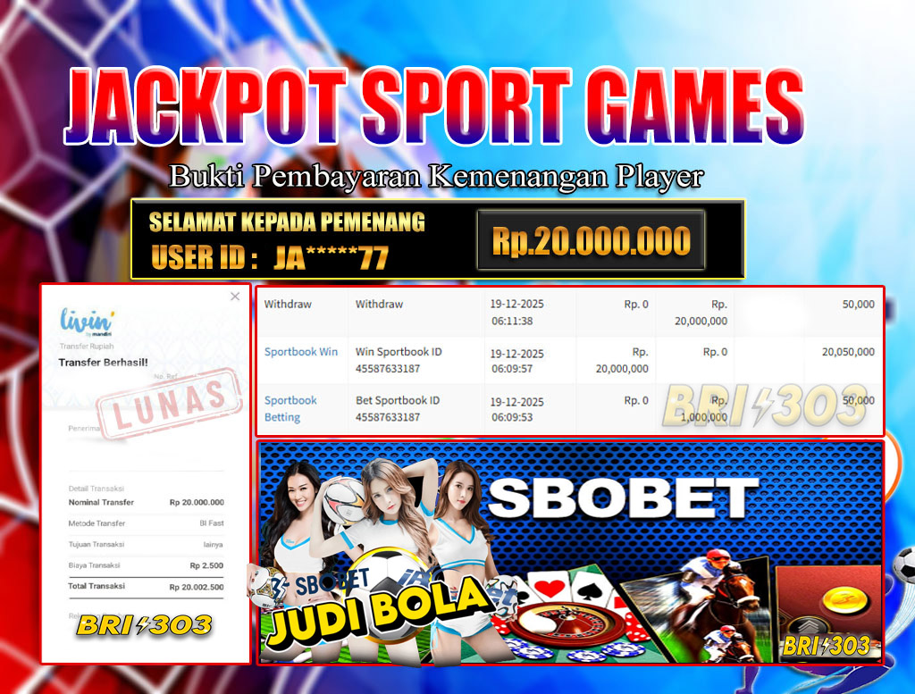 BRI303 JACKPOT SPORT GAMES 19 DESEMBER 2025 Rp.20.000.000,- LUNAS
