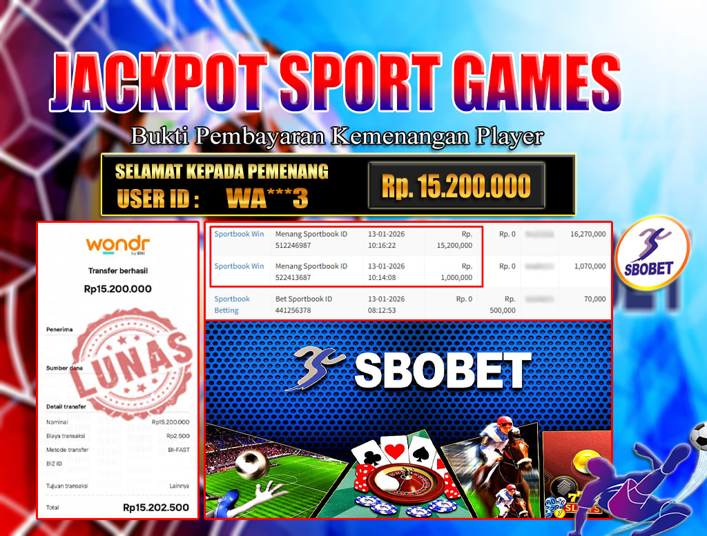 BRI303 JACKPOT SPORT GAMES 13 JANUARI 2026 Rp.15.200.000,- LUNAS