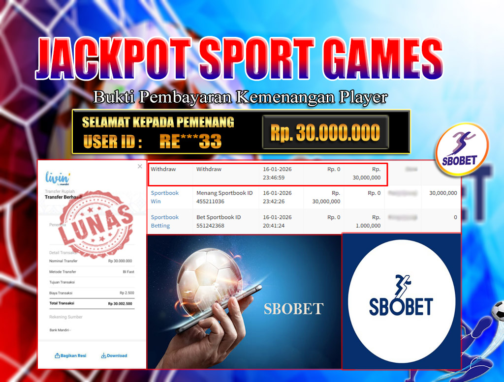 BRI303 JACKPOT SPORT GAMES 16 JANUARI 2026 Rp.30.000.000,- LUNAS