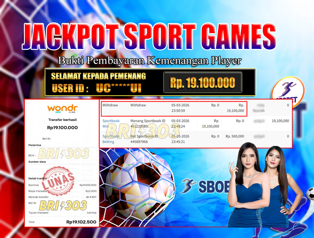 BRI303 JACKPOT SPORT GAMES 05 MARET 2026 Rp. 19.100.000,- LUNAS