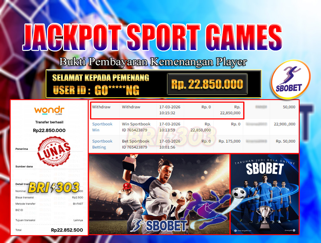 BRI303 JACKPOT SPORT GAMES 17 MARET 2026 Rp. 22.850.000,- LUNAS