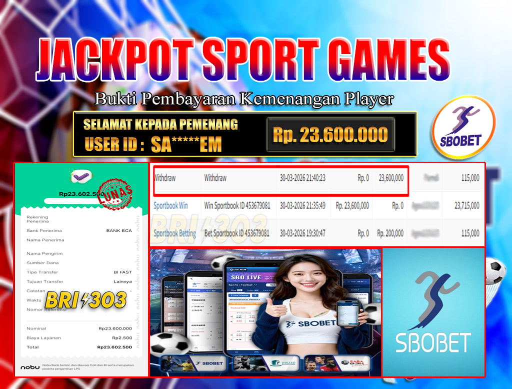 BRI303 JACKPOT SPORT GAMES 30 MARET 2026 Rp. 23.600.000,- LUNAS