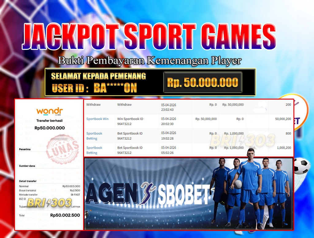 BRI303 JACKPOT SPORT GAMES 05 APRIL 2026 Rp. 50.000.000,- LUNAS