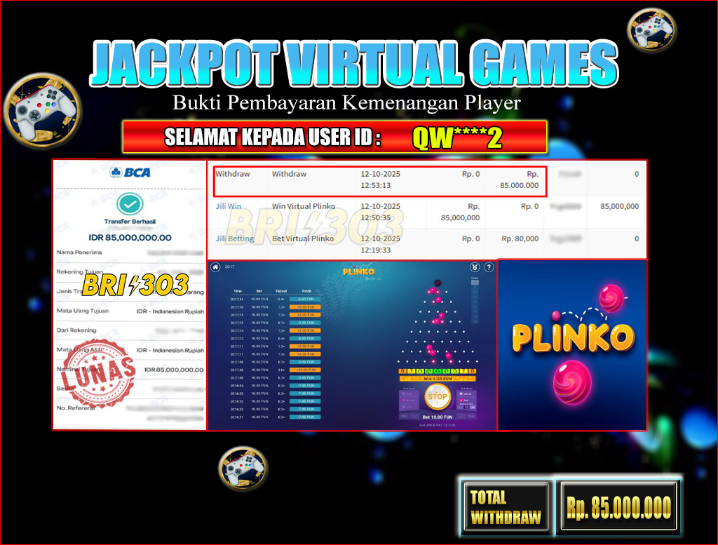 RI303 JACKPOT VIRTUAL GAMES 12 OKTOBER 2025 Rp.85.000.000,- LUNAS