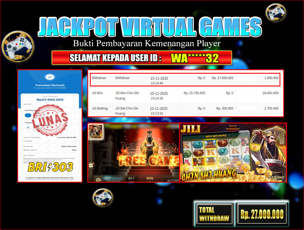 BRI303 JACKPOT VIRTUAL GAMES 15 NOVEMBER Rp. 27.000.000,- LUNAS