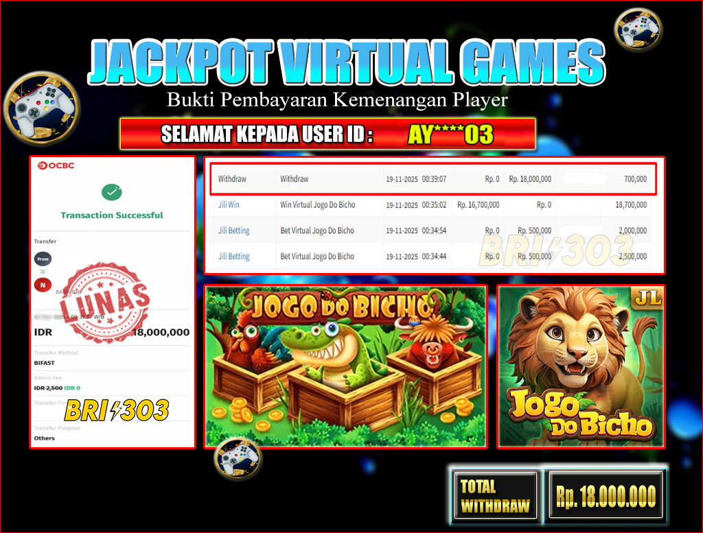 BRI303 JACKPOT VIRTUAL GAMES 19 NOVEMBER Rp. 18.000.000,- LUNAS