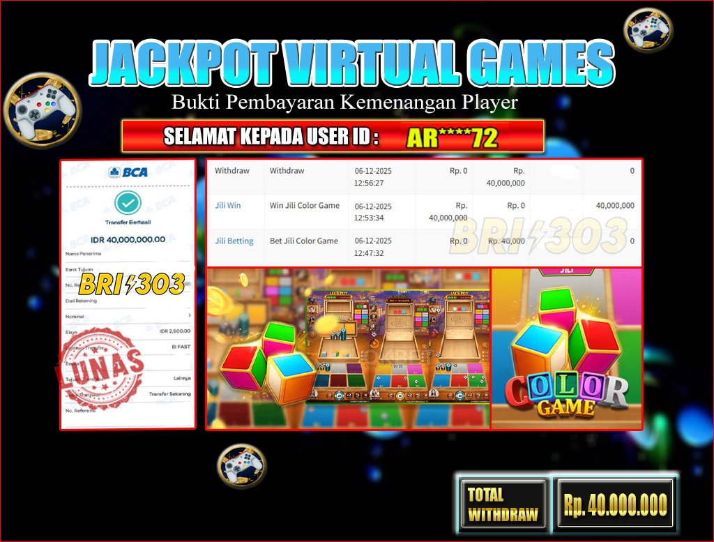 BRI303 JACKPOT VIRTUAL GAMES 06 DESEMBER Rp. 40.000.000,- LUNAS