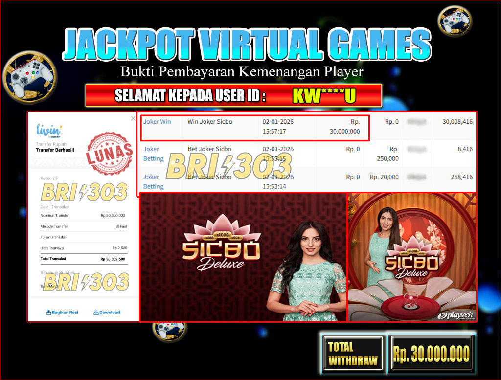 BRI303 VIRTUAL GAMES 02 JANUARI 2026 Rp. 30,000.000,- LUNAS