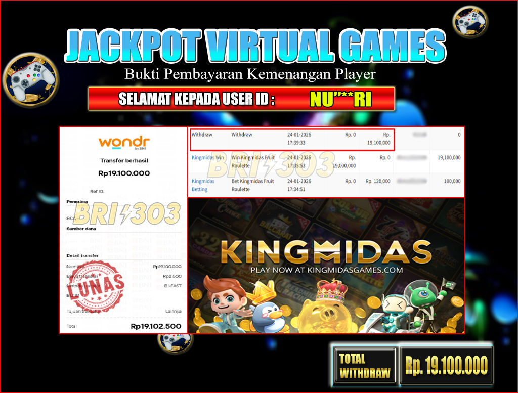 BRI303 VIRTUAL GAMES 24 JANUARI 2026 Rp. 19,100,000,- LUNAS