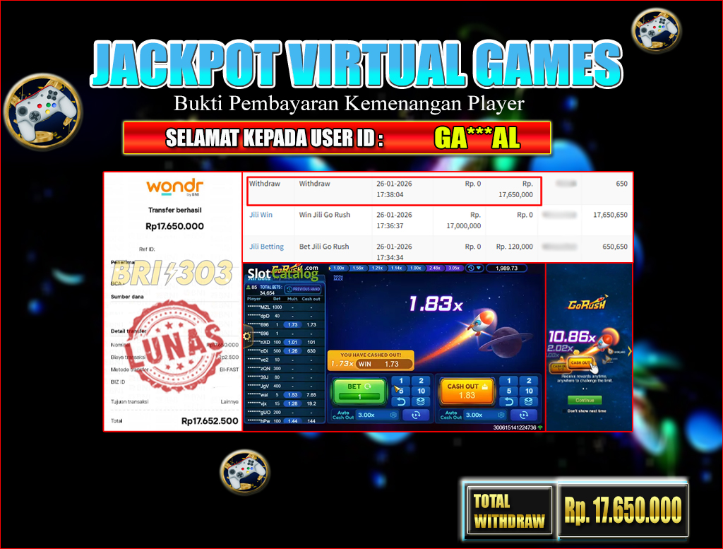 BRI303 VIRTUAL GAMES 26 JANUARI 2026 Rp. 17,050,000,- LUNAS