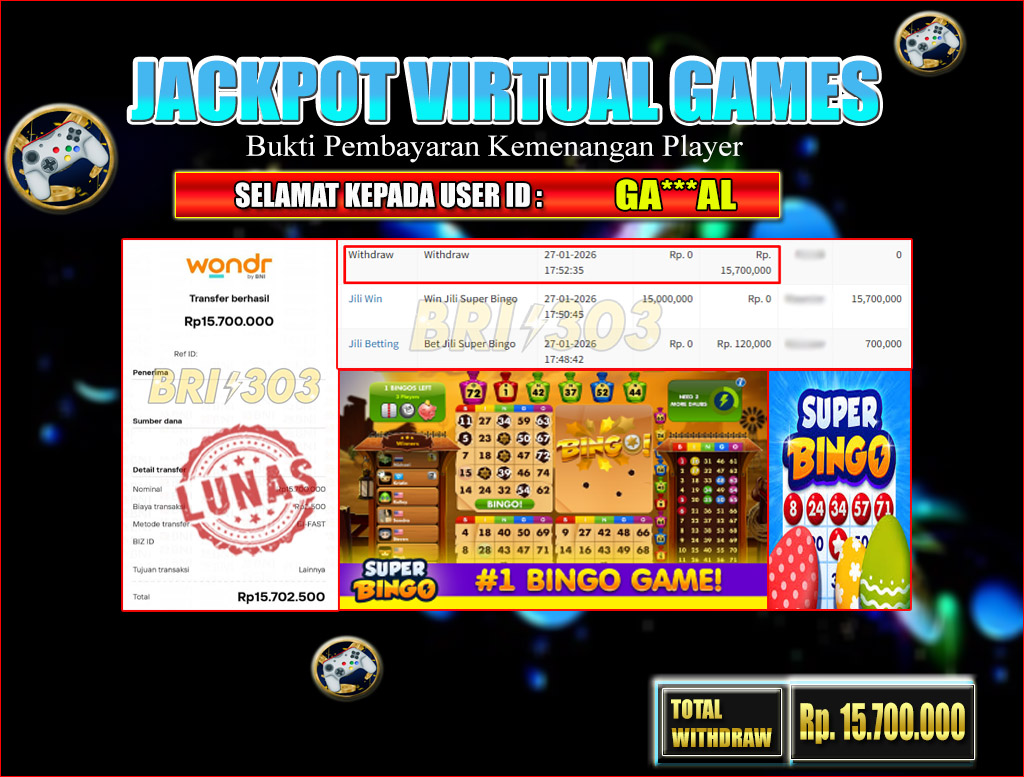 BRI303 VIRTUAL GAMES 27 JANUARI 2026 Rp. 15,700,000,- LUNAS