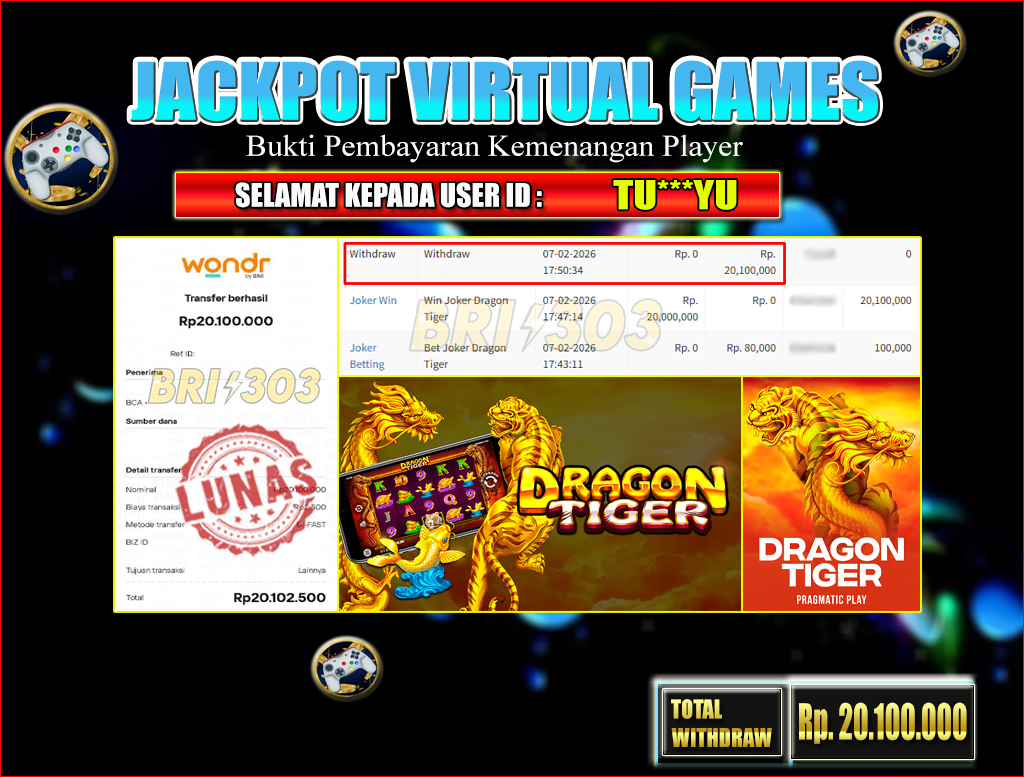 BRI303 VIRTUAL GAMES 07 FEBRUARI 2026 Rp. 20,100,000,- LUNAS