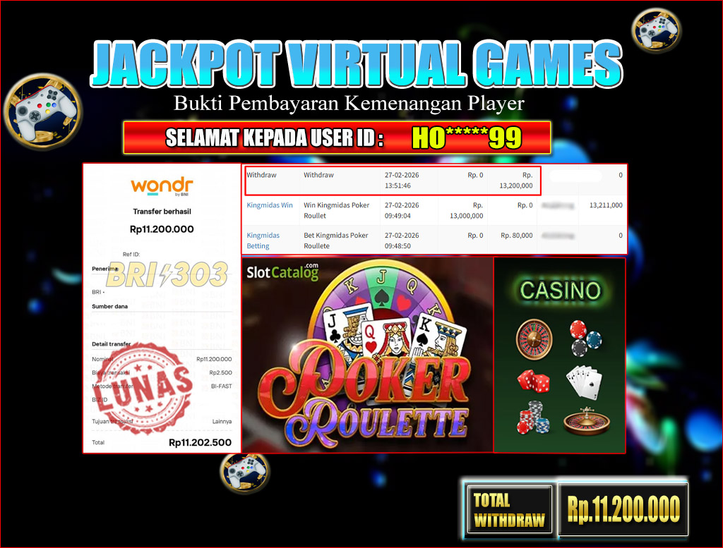 BRI303 JACKPOT VIRTUAL GAMES 27 FEBRUARI 2026 Rp. 11.200.000,- LUNAS