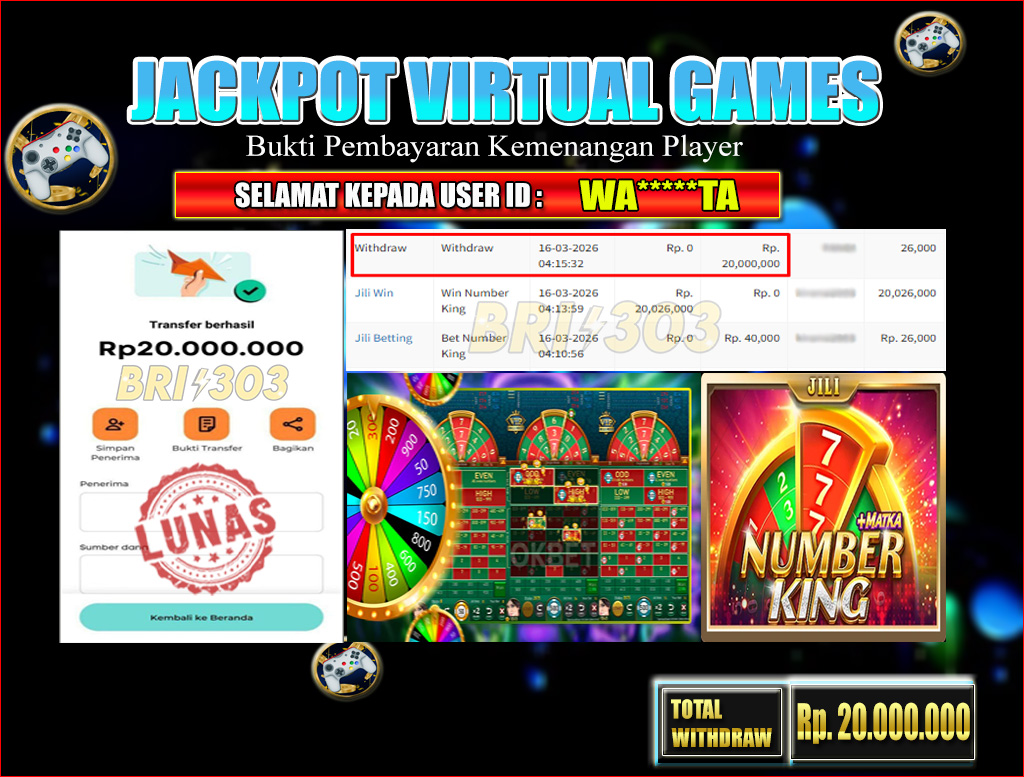 BRI303 JACKPOT VIRTUAL GAMES 16 MARET 2026 Rp. 20.000.000,- LUNAS