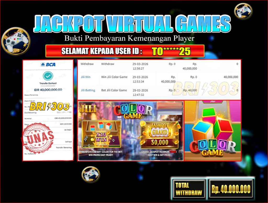 BRI303 JACKPOT VIRTUAL GAMES 29 MARET 2026 Rp.40.000.000,- LUNAS