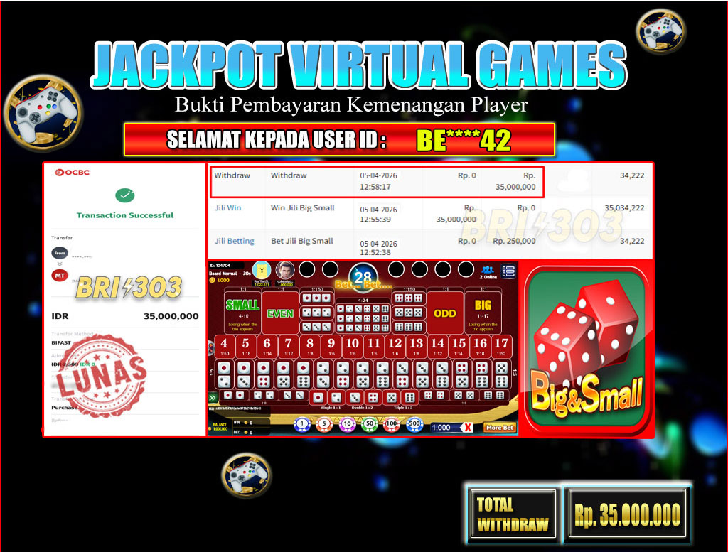BRI303 JACKPOT VIRTUAL GAMES 06 APRIL 2026 Rp.35.000.000,- LUNAS